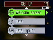Welcome Screen: Chooses the welcome screen that appears at startup, either none, static, or animated, or lets you designate a previously-shot image as the welcome screen.