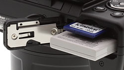 The Nikon P500 uses a slim 3.7V, 1,100mAh rechargeable lithium-ion EN-EL5 battery, capable of capturing up to 220 shots, or about 1 hour and 20 minutes of 1080p recording.
