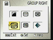 - Protect: Write-protects individual images from accidental erasure or manipulation. An special display of the images on the card appears, with a three image filmstrip across the top and a larger image preview on the bottom, which you scroll through and select images to be "locked." Protected images are only deleted through card formatting.