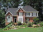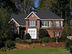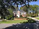 | Far-Field Test High resolution and strong detail, but high contrast limits the dynamic range. This image is shot at infinity to test far-field lens performance. NOTE that this image cannot be directly compared to the other "house" shot, which is a poster, shot in the studio. The rendering of detail in the poster will be very different than in this shot, and color values (and even the presence or absence of leaves on the trees!) will vary in this subject as the seasons progress. In general though, you can evaluate detail in the bricks, shingles and window detail, and in the tree branches against the sky. Compression artifacts are most likely to show in the trim along the edge of the roof, in the bricks, or in the relatively "flat" areas in the windows. This is my ultimate "resolution shot,"