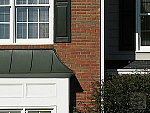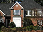 limbs, front shrubbery, and in the trim and brick pattern of the house