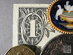 the dollar bill. Details are quite soft on the coins and brooch due to