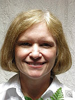 | Closer Portrait: Excellent resolution and detail, though contrast is high and the highlights too strong. The high-key lighting again results in high contrast, but the Nikon Coolpix 8400 required much less positive exposure compensation for this close-up shot. In the photo at right, I used a +0.7 EV exposure compensation adjustment to get the midtones more or less where they needed to be, but this again left the highlights overly bright, despite my setting the 8400's internal contrast adjustment to its lowest value. However, detail is good in the midtones and shadows, though the overall image is a hint dark. The Coolpix 8400's 3.5x zoom lens helps prevent distortion in Marti's features, and renders sharp details. Resolution and detail even better in this close-up shot, with strong definition in Marti's face and hair (a truly embarrassing level of detail), and in the cloth weave of the green leaves. To view the entire exposure series from zero to +1.3 EV, see files CP84OUTFACP0.HTM