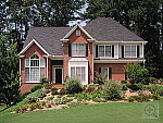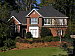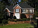 | Far-Field Test High resolution and strong detail, but high contrast leads to a modest underexposure. This image is shot at infinity to test far-field lens performance. NOTE that this image cannot be directly compared to the other "house" shot, which is a poster, shot in the studio. The rendering of detail in the poster will be very different than in this shot, and color values (and even the presence or absence of leaves on the trees!) will vary in this subject as the seasons progress. In general though, you can evaluate detail in the bricks, shingles and window detail, and in the tree branches against the sky. Compression artifacts are most likely to show in the trim along the edge of the roof, in the bricks, or in the relatively "flat" areas in the windows. This is my ultimate "resolution shot," given the infinite range of detail in a natural scene like this, and the Coolpix 8800 captures an exceptional amount of fine detail. Detail is very strong in the tree limbs and shrubbery, with excellent definition in the leaf patterns and in the fallen leaves on the ground. The brick pattern of the house also shows a lot of fine detail. Details are sharp throughout the frame, and there doesn't seem to be much loss of detail to noise-suppression processing, at least not in this ISO 50 shot. The camera manages to just hold onto the strong highlights in the bright white paint surrounding the bay window, which is often a trouble spot for digicams. To accomplish this though, the 8800 cut the exposure to the point that the rest of the image is rather dark, with the result that detail is only marginal in the shadow area above the front door, evidence of a slightly limited dynamic range. The table below shows a standard resolution and quality series, followed by ISO, sharpness, contrast, and saturation series. (Here is a sample image taken with the camera's Black and White setting.) Resolution Series: