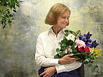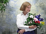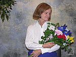 Good color with the Auto and Manual white balance settings, about average exposure compensation required. This shot is always a very tough test of a camera's white balance capability, given the strong, yellowish color cast of the household incandescent bulbs used for the lighting, but the Coolpix 8800's Manual white balance handled it very well. The Auto setting did quite well too, with only a slight red cast, but the Incandescent setting resulted in a warmer, yellow cast. Marti's skin tone looks very good (though just a hint magenta), and the flower bouquet looks about right as well. The blue flowers are slightly dark and purplish, but their color is still very good considering the difficult light source here. The main shot was taken with a +1.0 EV exposure compensation adjustment, about average for this subject. To view the entire exposure series from zero to +1.3 EV, see files CP88INMP0.HTM