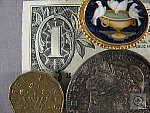detail in the dollar bill, coins, and brooch. Details are softer on the