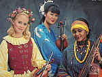 and instruments. The embroidered bird wings on the blue robe also show