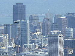Digital zoom was something of a disappointment on the Nikon Coolpix L10, but hardly worth complaining about. The shot of of downtown at 74.4mm (452mm in 35mm equivalent) is digitally zoomed and lacks detail.