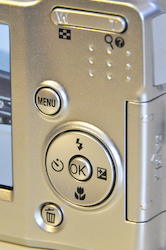 This isn't a particularly fancy navigator (it doesn't spin) but it is round (not four dinky buttons) and it does do useful stuff. You can toggle through the Nikon L14's Flash modes with the Up button (Auto, Auto with red-eye reduction, Off, Fill flash, Slow sync). You can adjust exposure (which is all automatic on this camera) with the Right button. You can easily toggle Macro mode with the Down arrow and the Left arrow toggles Self-Timer mode. Like every other Coolpix.