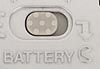 Battery door retention slider: On the battery compartment door is a small gray slider that locks the battery door until it is slid toward the Nikon L3's back.