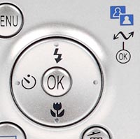 Multi Selector: Just right of the LCD, this small silver disk features four dots indicating each direction and an OK button in the center. In any Settings menu, pressing the four sides of the disk navigates through menu selections while the center button confirms menu selections.