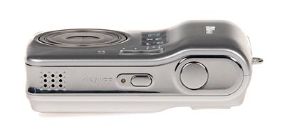 The top panel picks up the chrome band from the left side of the camera. From left to right on the panel are the speaker, the Power button and the shutter button which is set in an oval indenture that provides a nice place to put your finger.
