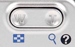 Zoom (W and T) Buttons: Located in the top right corner of the Nikon Coolpix L3's back panel, these buttons control the optical and digital zoom (when enabled) in any record mode. In Playback mode, the "W" button activates the index image display mode, while the "T" button controls digital enlargement of the captured image.