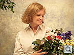 This shot duplicates indoor shooting conditions in most US homes, with fairly bright incandescent room lighting. The challenge here is for the camera's flash to blend naturally with the room lighting, and produce good, neutral color overall. - Some cameras will be overly affected by the room lighting, even with their flash enabled, and the result will be a strong orange cast. Another common failing is for the highlights from the flash to take on an unnatural bluish cast. Finally, exposure is important here, and frequently a tough challenge for the cameras. Marti's white shirt is central in the scene, reflecting a lot of the light from the flash right back at the camera. As a result, most cameras underexpose this shot, and require some positive exposure compensation to produce a good result. - And that's an important consideration in itself: Does the camera even permit adjustment of its flash exposures? Many do not. These photos are a tough exposure challenge, if they come out OK, the camera in question can probably be coaxed into delivering a good flash exposure of any subject within its range. Note too, that the normal flash shot (as opposed to the slow sync one, if the camera offers that feature) will be sharply rendered, any subject or camera movement frozen by the quick pop of the flash. That makes this shot a good one to look for the effect of over-aggressive noise suppression in Marti's hair. To view the exposure series from zero to +1.7 EV in the normal flash mode, see files CPS50CINFP0.HTM through CPS50CINFP5.HTM on the thumbnail index page. To view the same series in the Slow-Sync flash mode, see files CPS50CINFSP0.HTM