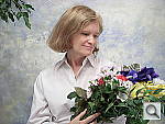 "Sunlit" Portrait: The lighting in this shot is deliberately awful, about what you'd expect from noontime sunshine here in the Atlanta, GA area. (In fact, the color balance has been chosen to pretty well match the hazy sunshine here in mid-August.) The reason for the harsh lighting is to provide a real "torture test" of how cameras handle conditions of extreme contrast; and in particular, how well they do holding onto highlight detail. Look for: