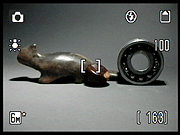 - Close Up: Adjusts the lens for close-focusing on small objects, apparently also increases color saturation slightly. Autofocus operates continuously until you half-press the shutter button, helpful in focusing on very close subjects. AF-area mode is set to "manual," so you can select what part of the frame you want to focus on by pressing the center button of the multi-controller and moving the focus cursor around the image with the arrow keys. Press the center button again to save the new AF area selection.