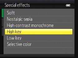 EFFECTS. The Menu button accesses a menu of Special Effects that includes: