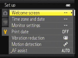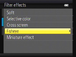The Scroll Wheel functions quite well as a navigator while still responding to the traditional arrow key presses. Up cycles through the Flash modes. Right accesses Exposure Compensation but that's not the half of it. Right really accesses the Creative slider with several settings (Hue, Vividness, Brightness [EV], Exit, and Reset). Down toggles Macro mode. And Left cycles through the Self-Timer modes (10s, 2s, Smile Timer, Off).