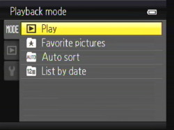 BACKLIGHTING. When your subject is in front of a strong light, you want this mode. The Menu button provides an HDR option. If HDR is off, the flash is fired when raised. With HDR on, the camera takes a series of images, saving one processed with D-Lighting and another that's a composite. No digital zoom.