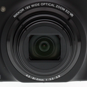 The 18x optical zoom features Nikkor Extra-low Dispersion glass to reduce chromatic aberration, a real help in a zoom this long. The focal range starts from a very wide 25mm (35mm equivalent) rather than 28mm or 35mm, and stretches to a barely handholdable 450mm. It consequently features Nikon's Vibration Reduction sensor-shift image stabilization system. But Nikon also uses what the company calls Electronic VR, where the camera does its best to eliminate the effects of camera or subject movement.