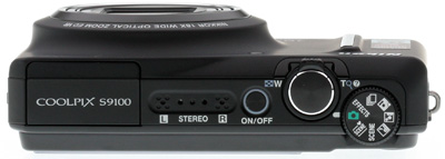 But the Coolpix S9100 cleverly stored the flash in the top panel with a small release switch on the left side. And, unlike the Canon SX series, which features a similar solution, the flash does not pop up when you power on the camera.