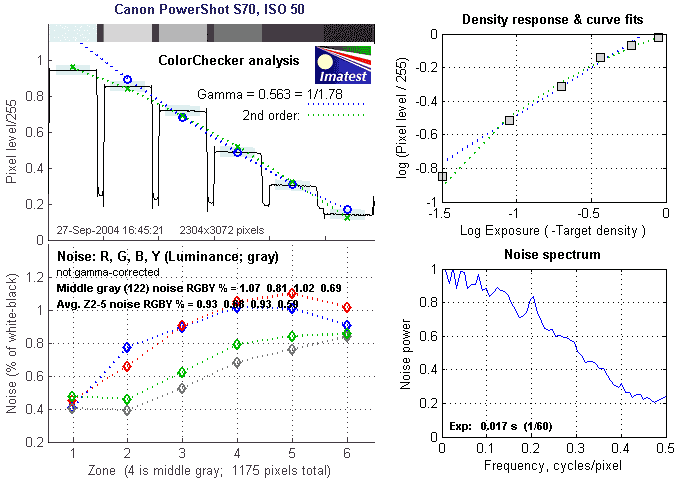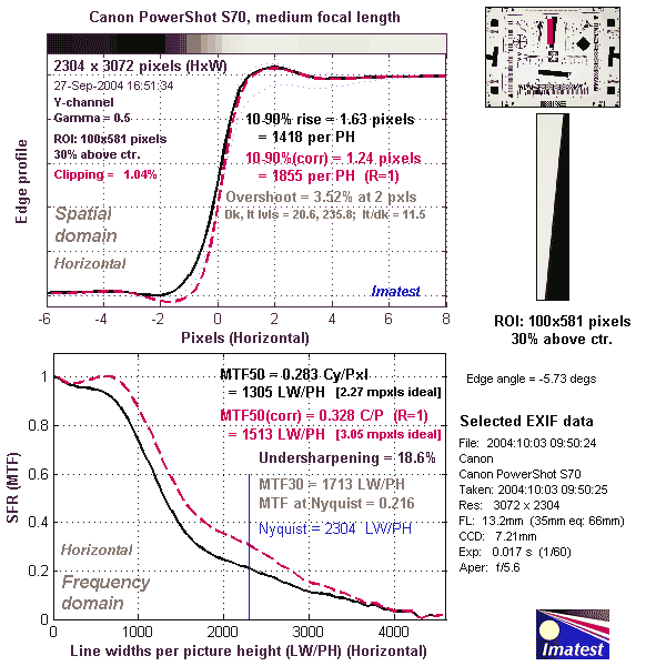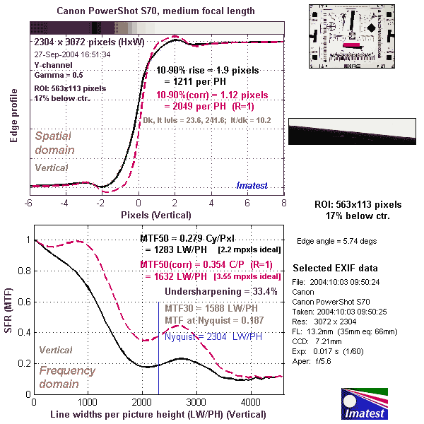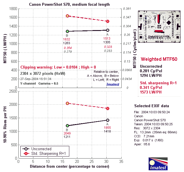Here's some of the results produced by Imatest for the Canon PowerShot S70:
