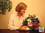 high contrast. (Apologies for the errant strand of hair!) The extreme tonal range of this image makes it a tough shot for many digicams, which is precisely why I set it up this way, and why I shoot it with no fill flash or reflector to open the shadows. The object is to hold both highlight and shadow detail without producing a "flat" picture with muddy colors. The SD10 did a pretty good job here, but did lose the strongest highlights. The shot at right was taken with a +0.7 EV exposure compensation adjustment, which lost a fair bit of highlight detail, even though the midtones ended up a little dark. (The SD10 has a slightly contrasty tone curve.). Midtones are a little dark, and highlight detail is limited in the brightest areas. I chose the Auto white balance for the main series, though the Daylight setting also produced good results. Skin tones look pretty good, although they're slightly reddish in places, and the blue flowers in the bouquet are almost perfect. (Many digicams have trouble with this blue, introducing more purple than is present in real life. The SD10's rendering of them is pretty close to spot-on though, only slightly dark.) Color and saturation are good throughout the rest of the frame as well. The SD10's 4.2-megapixel CCD picks up good detail throughout the frame, with reasonably good detail in the shadows. Image noise is moderately low. To view the entire exposure series from zero to +0.7 EV, see