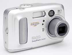 The Kodak EasyShare CX6330 is one of the latest in a long series of cameras that live up to their "EasyShare" name, being among the simplest to use of any cameras on the market, while at the same time delivering good-looking photos. The 3.1 megapixel Kodak CX6330 is a trimmed-down sibling to the 3.1 megapixel DX6340, the CX6330 having a shorter 3x zoom lens vs the DX6340's 4x optics, as well as a few less features. The EasyShare CX6330 takes excellent photos though, at a very reasonable price, and with a simple-to-use user interface that supports the EasyShare designation.