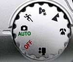 this dial controls the camera's exposure mode and power. The following options