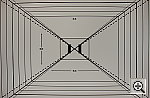 The D1H performed well on our "laboratory" resolution test chart. It started showing artifacts in the test patterns at resolutions as low as 650-700 lines per picture height, in both horizontal and vertical directions. I found "strong detail" out to at least 900 lines. "Extinction" of the target patterns occurred at about 1,200 lines. Optical distortion on the D1H will vary depending on the lens in use. During our testing, I shot with a 24-85mm f/2.8-4.0 Nikkor zoom lens, which produced a slight amount of distortion, roughly 0.67 percent barrel distortion from the wide angle setting. Chromatic aberration was almost nonexistent, showing only about one or two very faint pixels of coloration on either side of the target lines. (This distortion is visible as a very slight colored fringe around the objects at the edges of the field of view on the resolution target.) Resolution Series, Wide Angle