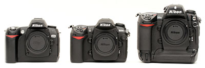 Three siblings: As you can see, the D200 is much closer to the D70's size than it is to the D2x's |