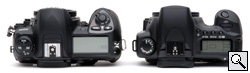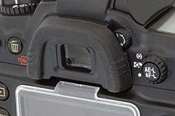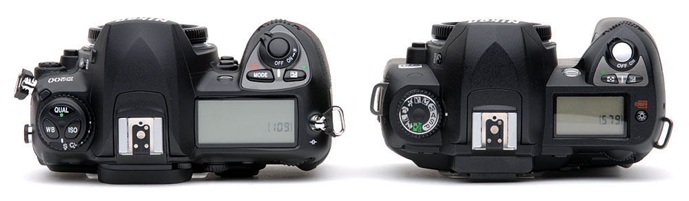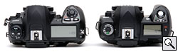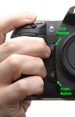With your hand wrapped around the grip and your finger on the shutter, the depth-of-field preview button is perfectly placed for your middle finger to stop that lens down in a hurry. It's the best placement I've seen in years. My only complaint is that on both Nikons closing the aperture is almost as loud as firing the shutter, while it's comparatively whisper quiet on the 20D