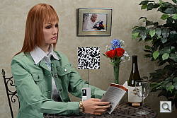 A note about focus for this shot: We shoot this image at f/4, usually using one of three very sharp reference lenses (70mm Sigma f/2.8 macro for most cameras, 60mm f/2.8 Nikkor macro for Nikon bodies without a drive motor, and Olympus Zuiko 50mm f/2.0 for Four Thirds and Micro Four Thirds bodies). To insure that the hair detail we use for making critical judgements about camera noise processing and detail rendering is in sharp focus at the relatively wide aperture we're shooting at, the focus target at the center of the scene is on a movable stand. This lets us compensate for front- or back-focus by different camera bodies, even those that lack micro-focus adjustments. This does mean, though, that the focus target itself may appear soft or slightly out of focus for bodies that front- or back-focused with the reference lens. We know this; if you click to view the full-size image for one of these shots and notice that the focus target is fuzzy, you don't need to email and tell us. :-) The focus target position will have been adjusted to insure that the rest of the scene is focused properly.
