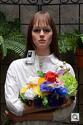 Detail. The crop above right shows some minor noise suppression, as the darker areas of the model's hair show good detail. Individual strands are still distinguishable even in the lighter shadows, though they begin to merge as contrast reduces. Still, very good performance here. Noise-suppression systems in digital cameras tend to flatten-out detail in areas of subtle contrast. The effects can often be seen in shots of human hair, where the individual strands are lost and an almost "watercolor" look appears.