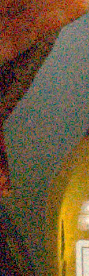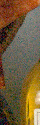 Here, we can clearly see the Nikon D3100's dramatic improvement in noise levels over the D3000. We'd estimate at least an f-stop of improvement. The Nikon D3100 clearly outclasses the Sony A290 and A390 SLRs as well. The Nikon D3100 also outperforms the Canon T1i, but by a much smaller margin. We're not sure if the Nikon D3100 applies some NR in its RAW files; if it is, it's very subtle. The Sony A290/A390 definitely apply noise reduction to their RAW files, so these crops were taken from RAW files with NR set to the lowest setting available on each camera. (When working from RAW files, users typically will want all available information in a image, which is why perceptual noise reduction applied to RAW files is generally frowned upon.)