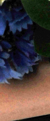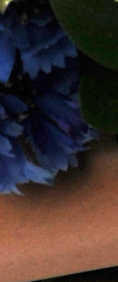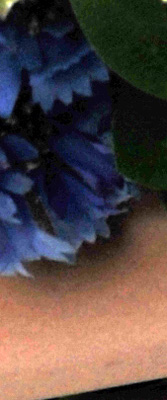 Detail. The crop above right shows really impressive detail with only minor noise suppression artifacts in the darkest areas of the model's hair. The camera's overall response here is much better than average. Noise-suppression systems in digital cameras tend to flatten-out detail in areas of subtle contrast. The effects can often be seen in shots of human hair, where the individual strands are lost and an almost "watercolor" look appears.