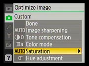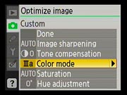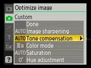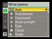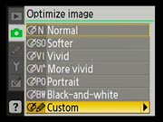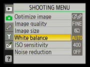 The Nikon D40x has a very complete Record ("Shooting") menu for an entry-level camera. Most of the features of the D80 are repeated here, the primary omission being the ability to apply color filters to the image while shooting in black-and-white mode. |