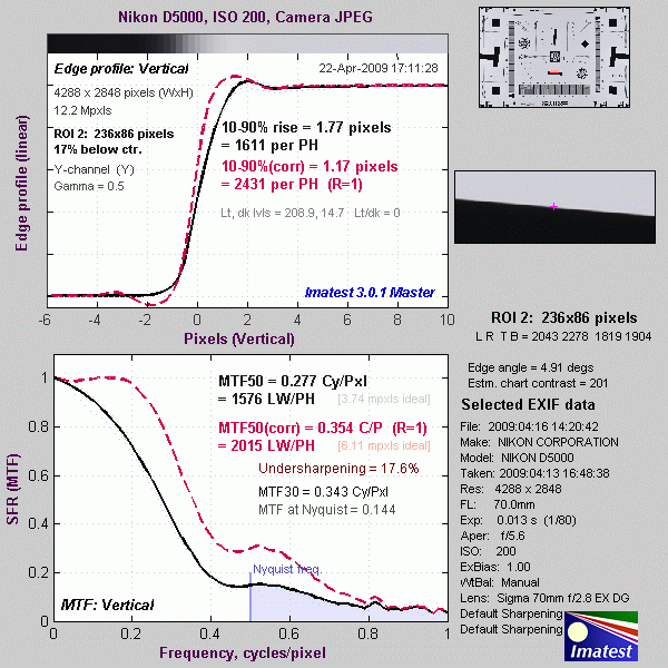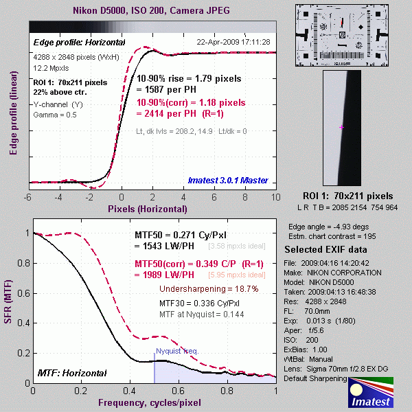Here's some of the results produced by Imatest for the Nikon D5000: