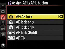 In any of the AF modes other than Auto Area, you can select the focus area by using the up, down, right, or left arrow directions on the multi-selector. There are two methods by which you can lock focus on the Nikon D5100. The first is to half-press the Shutter button to lock the focus, placing your subject in the selected focus area, halfway pressing the Shutter button, then realigning the composition and firing the shutter. (This is the default behavior of the Shutter button, but if the AE-L/AF-L button is set to AF Lock, it will override the shutter button as long as it's held down.) Alternatively, when using Single Servo AF, you can press the AF-L/AE-L button to lock focus (and exposure, unless that button is set for focus only in the Setup menu). Keeping this button pressed will lock focus and/or exposure, even if the Shutter button is released. This lets you recompose the photograph without keeping your finger on the Shutter button, but on the AE-L/AF-L button instead. (Reducing the chance that you'll accidentally trip the shutter when you don't intend to.)