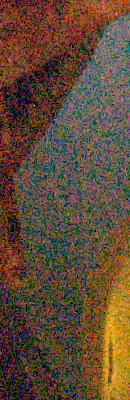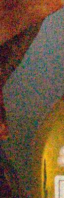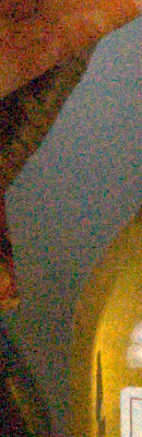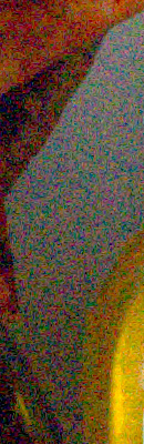 We've recently started looking at RAW files converted with dcraw, an excellent freeware raw converter. dcraw usually offers timely support for the latest cameras, but more importantly, it does not apply any noise-reduction, sharpening or other corrections such as geometric distortion correction to the output files. (We found that Adobe Camera Raw still applies some limited noise-reduction when its NR settings are set to zero, and it also applies other corrections depending on the make and model of the camera). There will always be differences between RAW converters, in terms of the sort of de-mosaicing algorithms they use (the processes by which they convert the separate Red, Green, and Blue data sets to an array of full-color RGB pixels), but dcraw seems to use a fairly generic algorithm that delivers good sharpness with relatively few artifacts, and can be counted on to not apply any noise reduction if you don't want it to. (That said, looking at the ISO 6,400 and above examples below, it's clear that dcraw's de-mosaicing approach does have some tendency to produce rectilinear artifacts in response to high noise levels.)