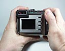 Olympus D-620L has a comfortable heft (just over 1 pound, minus batteries),