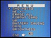 - HQ: High Quality, stores 24 images on an 8 MB card, at 1280x1024 image size