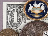 The Dimage 7 performed very well in the macro category, capturing a fairly small minimum area of just 1.92 x 1.44 inches (48.76 x 36.57 millimeters), which is among the best we've seen. Detail and resolution are excellent, with very sharp details throughout the image. The printing on the dollar bill is very clear, as are the tiniest details of the coins. Color balance is a little warm, giving the gray background a reddish tint. The Dimage 7's built-in flash has a lot of trouble throttling down for this very tiny macro area, completely overexposing the image and washing out the color and details.