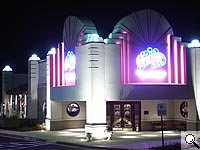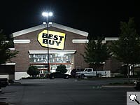 In addition to our studio tests, we took the Dimage 7 out for an excursion to the local mall late one night, with results shown above. (Click on each image to see the full-sized version, but beware, they run about 2 megabytes apiece.) The quality of these night shots is simply outstanding: There's very little noise (particularly impressive, given the sensor's resolution, as well as the prototype status of the camera we were shooting with), and even more dramatically, there's no sign of the dreaded "purple fringe" problem seen in so many digicams in similar situations. (This phenomena has commonly been referred to as chromatic aberration, but we don't think it's actually that, since it seems to be much more a function of light overload than simple light/dark contrast breaks.) On the throwaway shot of the Best Buys store, we felt the lack of bleeding around the grossly overexposed streetlights was a significant point. The fourth shot above is of a house across the street, in a rather dark residential neighborhood. This was shot at ISO 800, with a 4 second shutter speed, and is *considerably* brighter in this image than it appeared to the naked eye: The fairly bright sky behind the house was in fact only dimly visible as city glow reflecting from low overcast. (Note that the noise level on this shot may be lower than you'd see normally: We shot this photo at the smaller 1600x1200 image size, so there may be some averaging between adjacent pixels going on, which would tend to reduce the noise level somewhat.) Bottom line, the Dimage 7 looks like it will be an incredible low-light performer.