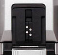Another neat feature of the Digital Hyper Viewfinder is its auto-switching capability. On the right side of the eyepiece, there are infrared sensors inset behind a pair of vertical windows. (You can see the windows slot to the right of the objective in the viewfinder eyepiece photo above.) By placing the Display Mode control in the "A" position (see photo inset right), the IR sensors detect your eye as it approaches the viewfinder, automatically turn off the rear panel LCD, and activate the EVF. If you bring the camera back down again, the process is reversed, and the LCD panel comes back on. Very handy! (As you can see, there are also settings for activating the EVF or LCD only.)
