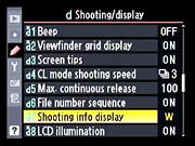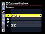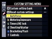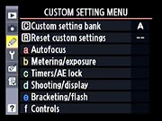 Nikon D700 Custom Setting Menu Options