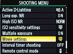 Nikon D7000 Video Options |