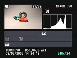 One of the most obvious differences between the Nikon D90 and the D80 that went before it is the new model's rear-panel shooting info display. This is somewhat reminiscent of the "Classic" version of the shooting display on the D60, but the information is arranged quite differently, and Nikon has expanded their use of the margin for quick access to some of the more frequently menu items.