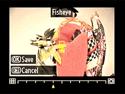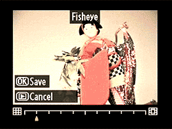 Back in the "more fun than useful" category, you can also apply a fisheye effect to your photos, post-capture. (By the way, note that all these post-capture effects create new images on the card, rather than modifying the original.) |