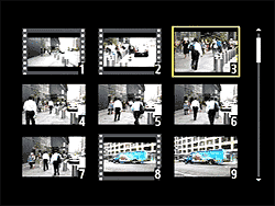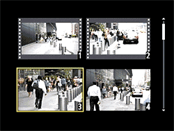 The nine thumbnail display is familiar from earlier models. | Ditto the 4-thumbnail screen. (Note the "sprocket holes" designating movie files: A first for a DSLR!) |